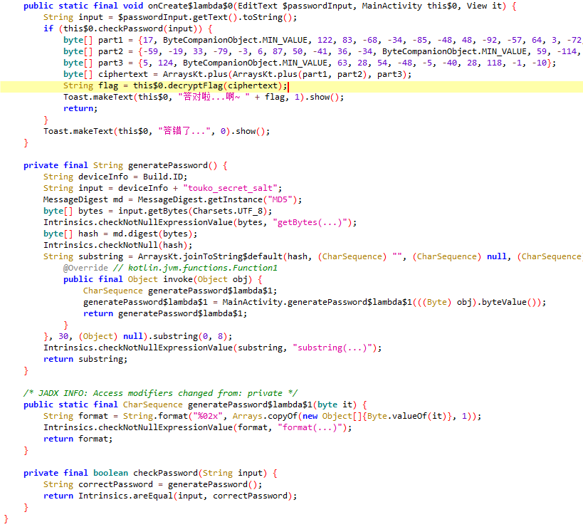 通过hook checkPassword获得CorrectPassword,输入弹窗获取flag