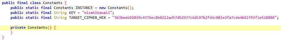 Constants对象有key和cipher,具体加密逻辑在so文件中