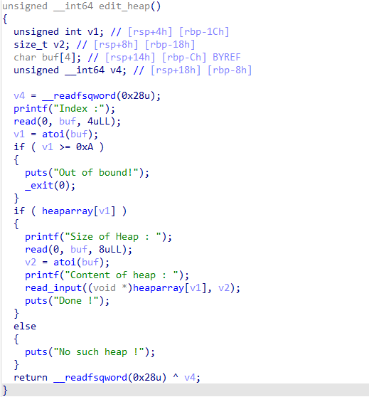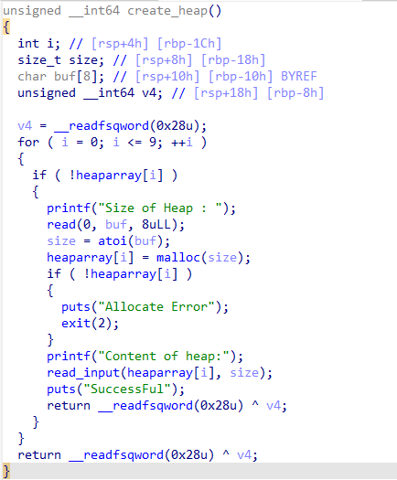 同时存在后门函数,修改一个内存为较大的数即可触发,为了unsorted bin attack而设置的一个点。